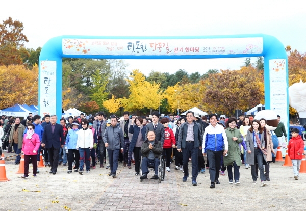 지난 27일 유성구가 개최한 ‘탄동천 단풍길 걷기 한마당’에 참여한 과학인과 주민 1700여 명이 단풍이 무르익은 가을 풍경을 즐기는 시간을 보냈다.