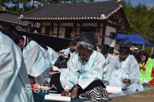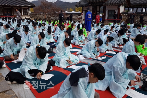 올해로 8회를 맞이한 이날 행사에는 4개 부문(초등·중등·고등·일반)에 전국에서 참가한 310여명이 응시해 도포와 유건을 입고 그동안 갈고 닦은 소양과 재주를 겨뤘다.
