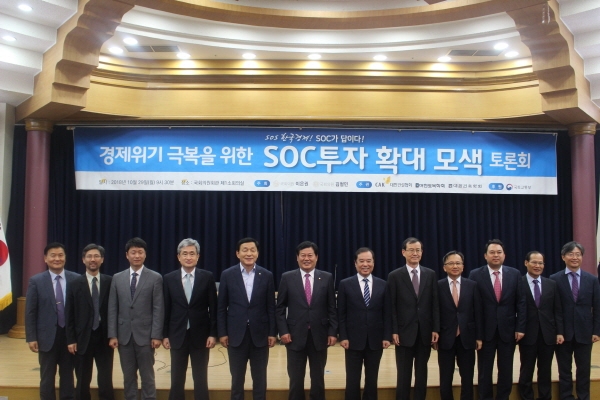 이은권 의원과 김철민 의원이 주최하고 대한건설협회가 주관하는 '경제위기 극복을 위한 SOC 투자 확대 모색 토론회'가 29일 오전, 국회의원회관 제1소회의실에서 열렸다.