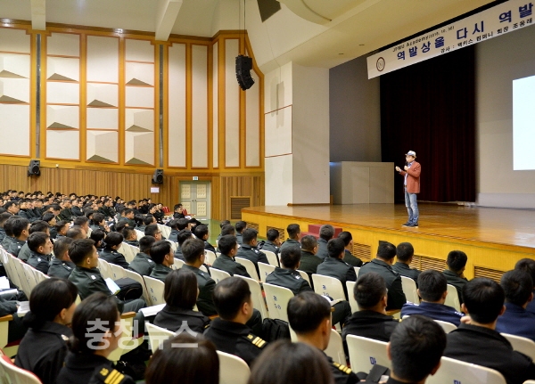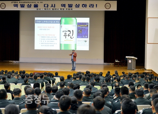 합동대는 30일 다른 사람들이 생각하지 못한 역발상으로 CSV(Creating Shared Value, 공유가치창출) 경영을 선도하는 ‘콘텐츠 메이커’ ㈜맥키스 컴퍼니 대표인 조웅래 회장을 초청하여 학교 간부들과 학생장교들과의 대화를 통해 군인이 왜 창의적 이어야 하며, 우리 군이 왜 역발상의 시각으로 세상을 바라보아야 하는지에 대해 함께 고민해보고 이야기하는 시간을 가졌다.