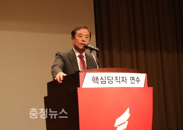 이날 핵심당직자 연수에는 홍문표(홍성.예산), 이명수(아산갑), 김태흠(보령.서천), 성일종(서산.태안) 국회의원, 이창수 충남도당위원장, 김석환 홍성군수, 황선봉 예산군수 등을 비롯한 당원협의회 핵심 당원 등 300여명이 참석했다.