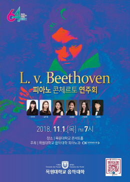 목원대 음악대학 피아노과(학과장 민경식)는 내달 1일 교내 콘서트홀에서 ‘L. V. Beethoven 피아노 콘체르토 연주회’를 개최한다.