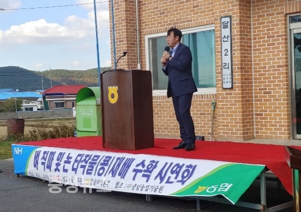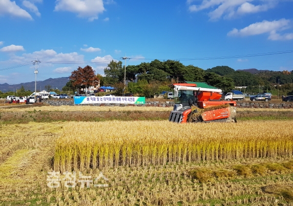 농협중앙회 충남본부(본부장 조소행)는 보령시 남포면에서 농가소득 증대를 위해 추진한 벼 직파 및 논 타작물(콩) 재배 수확 시연회를 개최하였다고 31일 밝혔다.