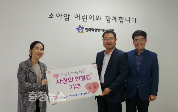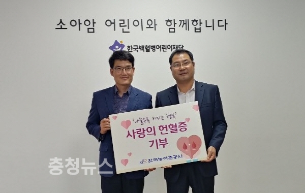 한국농어촌공사(사장 최규성)는 31일 광주 서구 한국백혈병어린이재단(광주나음소아암센터)을 찾아 헌혈증 116장을 기부했다.