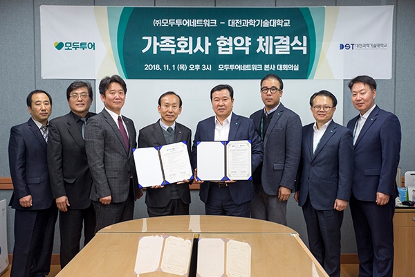 대전과학기술대학교(총장 이효인)는 ㈜모두투어네트워크(대표이사 우종웅)와 1일 가족회사 협약을 체결했다.