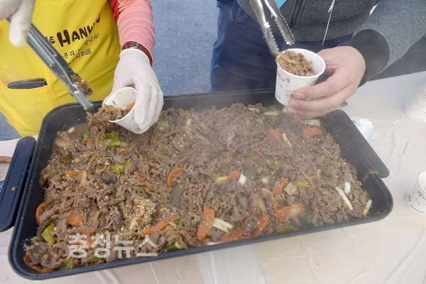 이날 행사에는 한우로 만든 불고기와 육개장을 시민들에게 무료로 시식 행사와 함께 ‘11월 1일은 대한민국이 한우 먹는 날’이라는 슬로건으로 한우 소비 촉진을 위한 홍보활동을 펼쳤다.