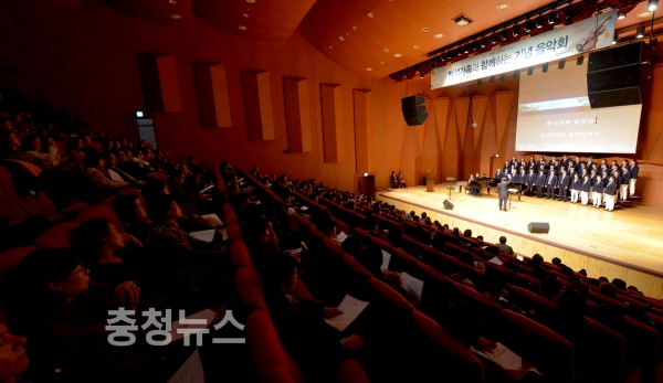 건학 42주년 기념 음악회에서 백석대학합창단이 ‘난 여호와로 즐거워하리’를 부르고 있다.