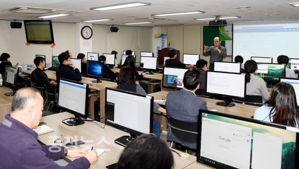 충남대학교 김득준 교수로부터 온라인 홍보의 효과적인 홍보방법과 스마트폰에서 쉽게 새어나갈 수 있는 개인정보 보호법을 부서별 홍보 담당자 41명이 전수받았다.