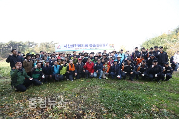 충남 서산지역 기관단체장들의 모임인 서산발전협의회(회장 맹정호)가 농촌일손 돕기에 한마음 한뜻으로 나섰다.