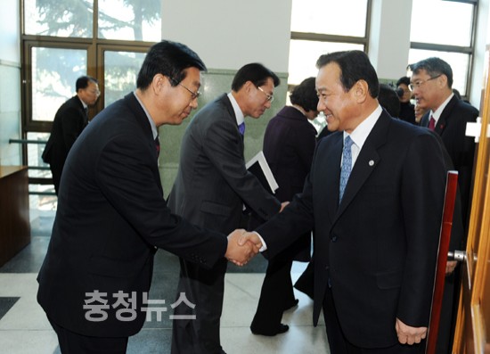 ▲ 이완구지사는 2일 오전 도청 직원들과 새해 인사를 나누고 있다.