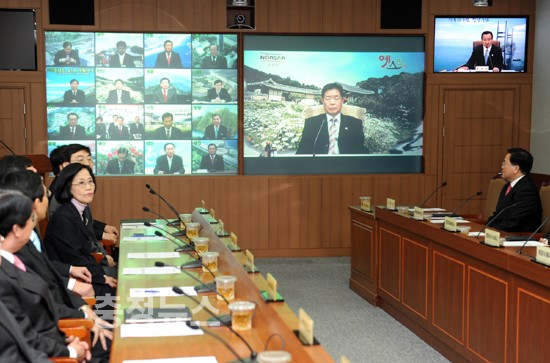 ▲ 이지사가 충남도내 시장 군수와 영상으로 새해 인사를 나누고 있다.