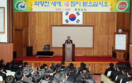 또 "도가 추진해 가고 있는 많은 사업들이 어떻게 진행이 되는지 매일 매일 보고를 받고 체크를 해 나가야 한다"고 말하고 "올해는 전 공무원들이 발상과 의지를 새롭게 해 나가고, 도지사도 어떠한 희생이 있더라도 반드시 강한 충남을 건설하는데 모든 역량을 쏟을 것"이라고 말했다.