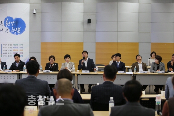 간담회에는 ‘천안시 체육종목단체협의회(회장 한남교)’ 54명과 시의원 25명, 천안시 관계부서 공무원 등이 참석했으며 각 종목별 건의사항과 개선사항에 대해 논의했다.