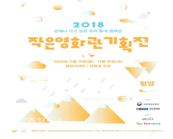 지역 주민들의 문화향유에 큰 기여를 하고 있는 청양시네마에서 오는 12일부터 16일까지 5일간 ‘2018 작은영화관 기획전’이 개최된다.