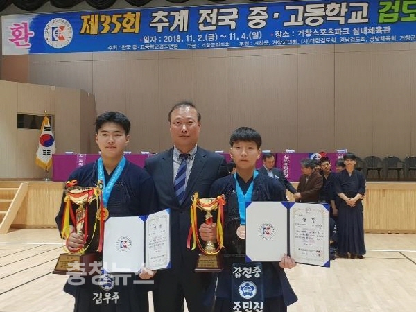 제35회 추계 전국 중·고등학교 검도대회 개인전에서 대전갑천중학교 김우주 학생이 1위, 조민진 학생이 3위에 입상