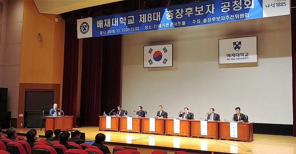 이날 6명의 총장 후보자들은 모두 발언과 공통 질문, 상호 토론 등을 주고받으며 배재대 경영 비전을 밝혔다.