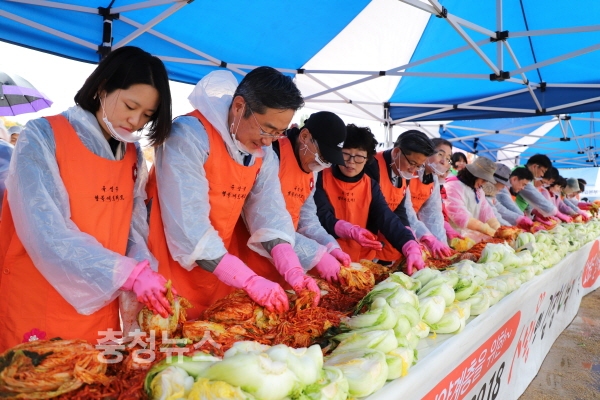 골프존뉴딘그룹(회장 김영찬)은 8일 대전시 유성구 유림공원 잔디광장에서 ‘2018 유성구 사랑의 김장 나누기’ 행사를 진행했다고 밝혔다.