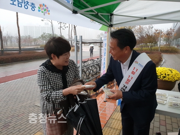 농협 충남지역본부(본부장 조소행)는 11월 11일 농업인의 날을 맞이해 충남도청에서 충청남도 및 (사)우리농업지키기운동본부와 공동으로 가래떡데이 행사를 개최했다.