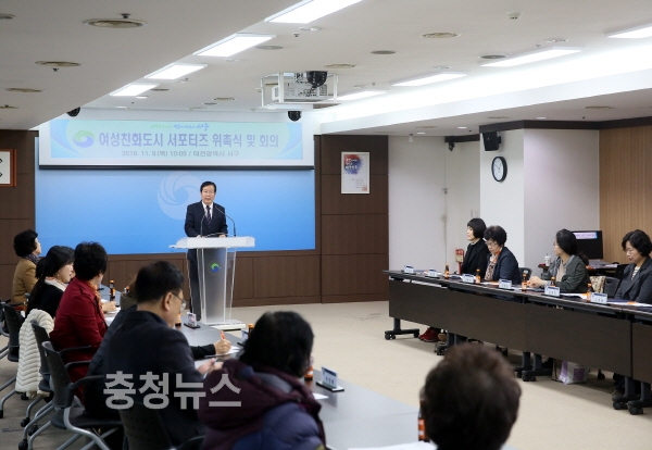 장종태 서구청장은 “지역정책과 발전과정에 남녀가 동등하게 참여하고 그 혜택이 모든 주민에게 고루 돌아가면서, 여성의 성장과 안전이 구현되도록 정책을 수행하는 여성친화도시 서구가 되기 위해서는 서포터즈의 역할이 중요하다“며 “서포터즈가 앞장서 행복동행 여성친화도시 서구로 거듭날 수 있도록 적극적인 활동을 해달라“고 당부했다.