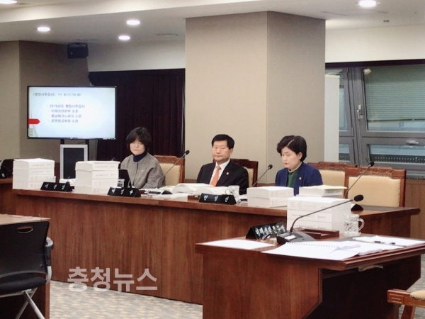 충남도의회 행정자치위원회(위원장 이공휘)는 8일 열린 도 미래성장본부와 테크노파크, 공무원교육원 소관 행감을 진행하고 있다.