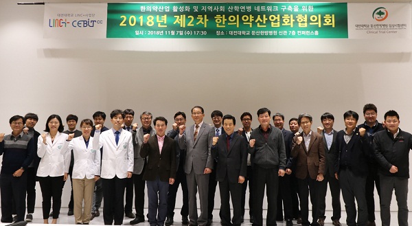 한의약산업화협의회(대전대학교 링크플러스사업단·둔산한방병원 임상시험센터)는 7일 한의약산업 활성화 및 지역사회 네트워크 구축을 위한 ’2018년 제2차 한의약산업화협의회’를 개최했다.