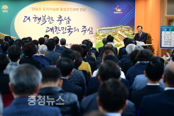 또한 주민과의 대화시간에는 고중섭 홍성군주민자치협의회장이 주민자치 활성화를 위해 道차원의 체계적인 집합교육을 진행해 줄 것을, 김영달 홍성군 선주연합회장은 서산A지구 간월호 수위조절로 인한 천수만 해양환경 피해관련 대책 및 해결방안을 요구했다.