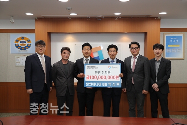 국립 한밭대학교(총장 최병욱)는 지난 8일 대학본부에서 문원미디어 대학발전기금 기부 약정식을 개최하고 문원미디어 박상현 대표로부터 문원장학금 1억 원을 약정 받았다고 밝혔다.