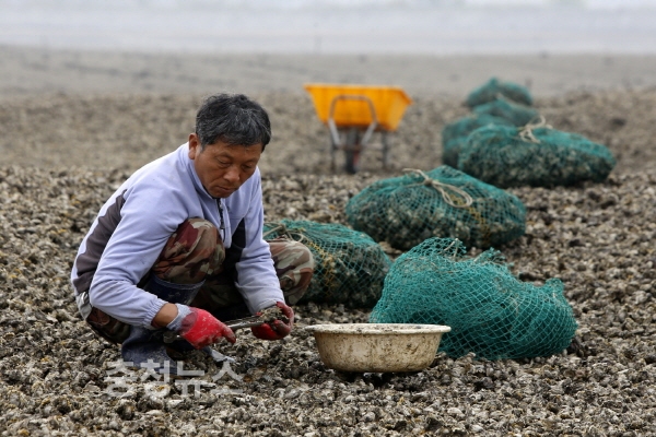 태안군에 따르면, 안면도 천수만에 위치한 창기7리 어촌계(어촌계장 이병준)에서는 하루 20~30여 명의 계원들이 이달 중순부터 굴 채취에 나서 일인당 10kg 이상을 채취하고 있다.