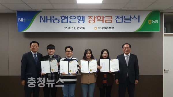 NH농협은행 충남영업본부(본부장 원종찬)는 지난 12일홍성군 내포신도시에 위치한 홍성고등학교 재학생 4명에게 장학금 200만원을 전달했다.