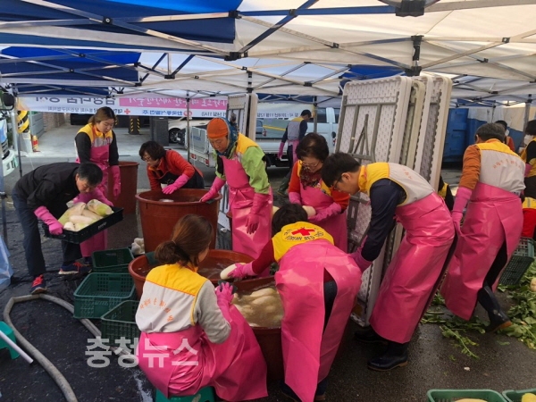 또한 14일(수)에는 김용기 당진화력 대외협력실장을 비롯해 심병섭 당진시 부시장, 김기재 당진시의장, 유창기 대한적십자사 충남지회장 등이 참석하여 봉사자들과 함께 김장을 담그며 일손을 보탠다.