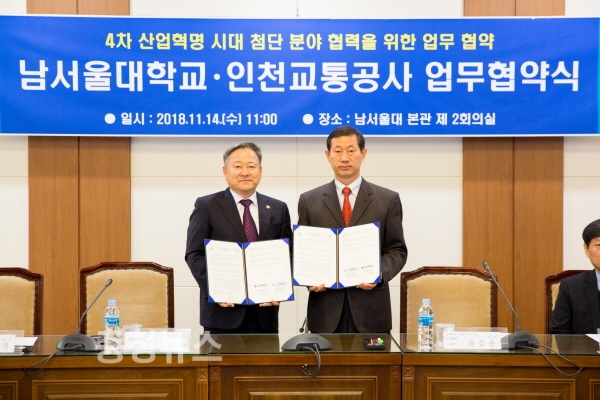 남서울대학교(총장 윤승용)는 14일 인천교통공사(사장 이중호)와 ‘4차 산업혁명 시대 첨단 분야 협력’을 위한 업무협약을 체결했다고 밝혔다.