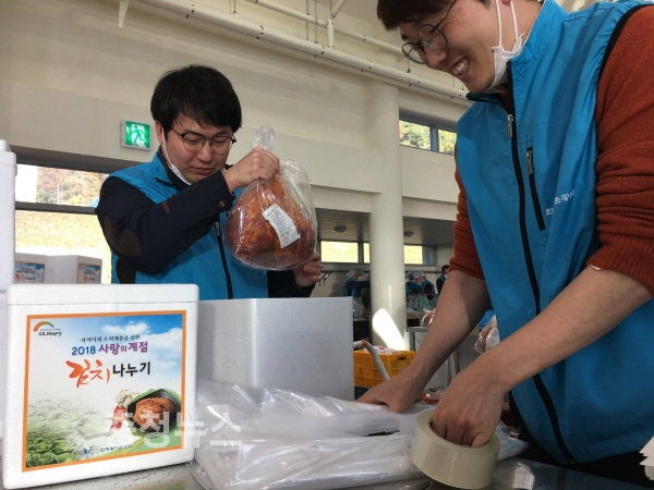이날 행사에는 공사 임직원 50여명이 참여해 배추김치 320box(1,600kg)를 직접 담가 광주·전남 지역 사회복지시설 5곳에 전달했다.