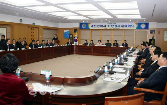 박성효 대전시장은 15일 오전 시청 대회의실에서 올해 첫 비상경제대책회의를 주재한 자리에서 "현장의 애로사항을 접수하는 핫라인을 설치하고 신속하게 처리하는 시스템을 구축할 필요가 크다"고 말했다.