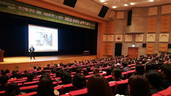 이날 교육은 OtvN ‘어쩌다 어른’에 출연하며 대중들에 큰 호응을 받은 인지심리학자인 김경일 아주대 교수를 초청, ‘인간이 만든 게임, 게임이 만드는 인가: 게임과 아이의 과학적 함수‘라는 주제로 강연이 진행됐다.