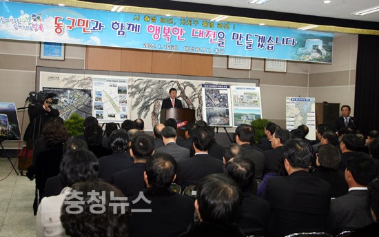 박성효 대전시장은 16일 이장우 동구청장, 김종성 구의회 의장을 비롯한 구민 300여명이 참석한 가운데 열린 동구 연두방문에서 이 같은 내용을 골자로 한 동구 투자계획을 설명했다.