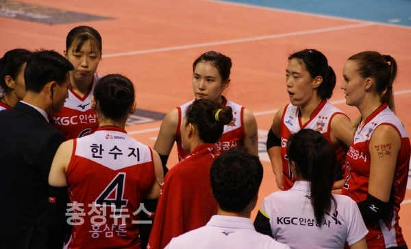 반면 인삼공사는 최은지와 채선아가 각각 14득점과 9득점으로 분전했음에도 외국인 선수 알레나 버그스마가 14득점에 그치는 공격부진으로 3연패 늪에 빠졌다.