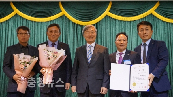 감사원 자체감사사항 콘테스트 최우수상에 농어촌공사(왼쪽에서 두번째 조익문 감사, 가운데 최재형 감사원장)