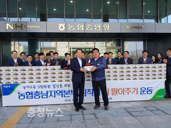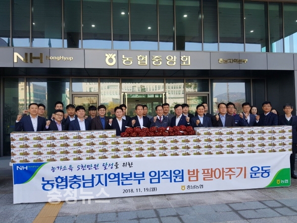 농협 충남지역본부(본부장 조소행)는 농협충남세종노조(지역위원장 류병관) 와 함께 19일 경기불황 및 소비위축으로 판매에 큰 어려움을 겪고 있는 밤 소비촉진을 위해 임직원 ‘밤 팔아주기 캠페인’을 전개 했다고 밝혔다.