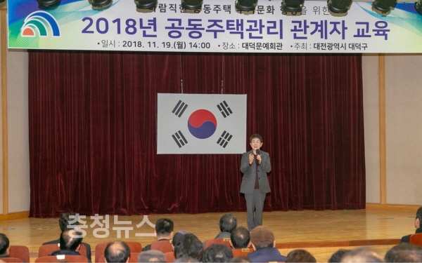 대전 대덕구(구청장 박정현)가 지난 19일 대덕문예회관에서 공동주택 입주자 대표, 관리주체 등 200여 명이 참석한 가운데‘2018년 공동주택관리 관계자 교육’을 실시했다.