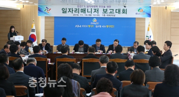 대전 동구(구청장 황인호)는 19일 구청 7층 대회의실에서 각 부서 22명의 매니저가 참석한 가운데 일자리대책 보고대회를 개최했다.
