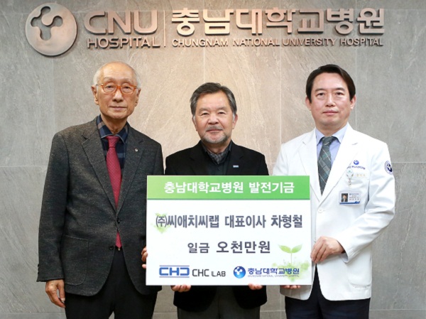충남대병원은 ㈜씨애치씨랩 차형철 대표이사로 부터 병원 발전기금 5000만 원을 기부 받았다고 19일 밝혔다.