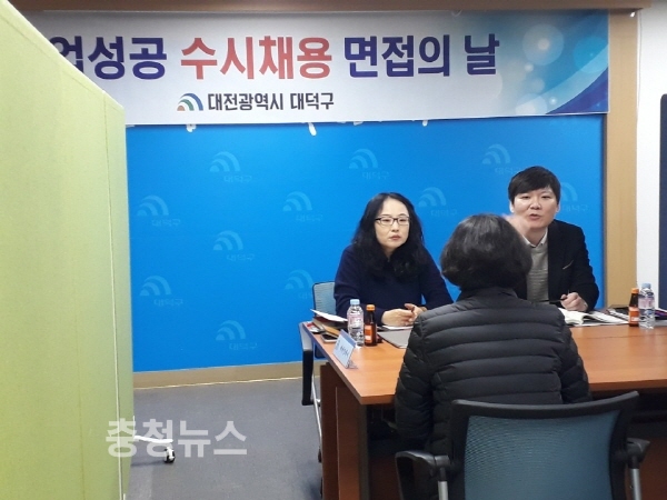 대덕구(구청장 박정현)는 기업의 채용방식 변화에 대응하고, 채용조건에 적합한 구직자를 찾아 취업을 지원하기 위해 20일 구청 소회의실에서 수시채용 면접의 날 행사를 개최했다.