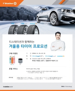 한국타이어(대표이사 조현범)의 타이어 중심 자동차 토탈 서비스 전문점인 티스테이션(T’Station)이 21일부터 다음달 31일까지 겨울철 안전 드라이빙을 위한 필수품인 겨울용 타이어 구매 고객에게 경품을 증정하는 이벤트를 실시한다.