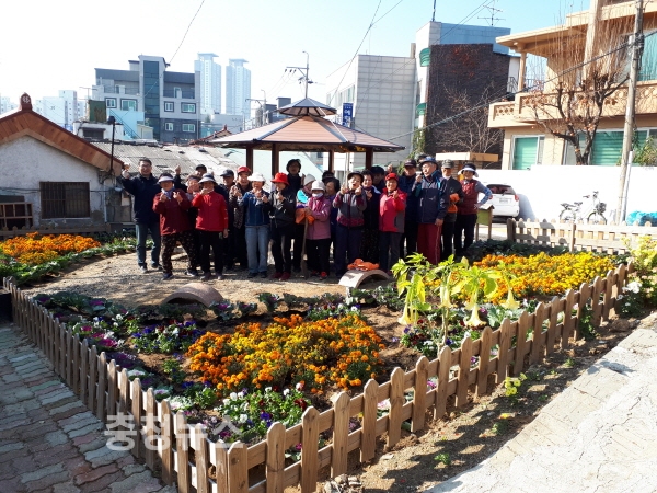 주민들은 지난 해 빈집정비사업으로 탄생한 마을공동쉼터에 계절마다 새로운 꽃을 심어 보다 다채로운 꽃들로 쉼터의 계절별 변신을 도모하고 있다. 이번에는 추위를 잘 견딜 수 있는 꽃양배추와 팬지 등 겨울 꽃 600본을 심어 지난달 심었던 다양한 색의 가을꽃과 조화를 이루며 더욱 아름다운 동네쉼터로 변모했다.
