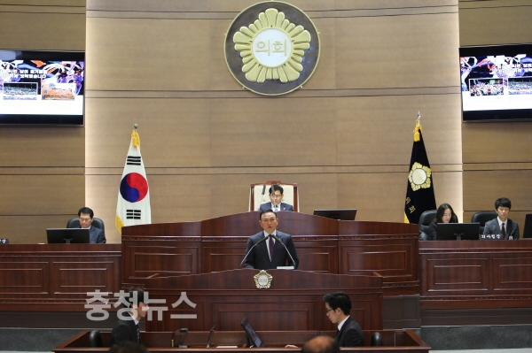 구본영 천안시장은 내년도 예산안에 대한 시정연설을 통해 "더 큰 천안, 더 큰 행복을 달성하기 위해 시민과의 약속사업 111대 과제를 실천 하는데 혼신의 노력을 다하겠다"고 약속했다.
