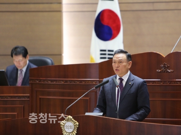 구본영 천안시장이 20일 열린 천안시의회 218회 2차 정례회에서 시정연설을 통해 2019년 시정운영 방향을 제시했다.