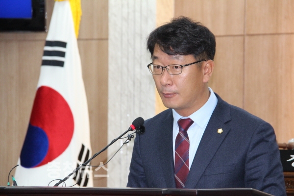 노승천 홍성군의원이 21일 본회의장에서 5분발언을 하고 있다.