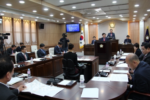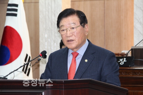 김석환 군수는 이날 본회의장에서 열린 정례회를 통해 2019년 예산운용 군정연설을 실시했다.