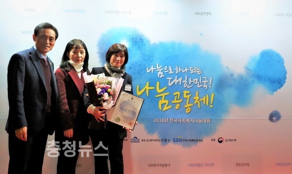 충남 천안시노인종합복지관 전미자 봉사자가 한국사회복지협의회가 주최한 ‘2018년 전국사회복지나눔대회’에서 보건복지부장관상을 수상했다.
