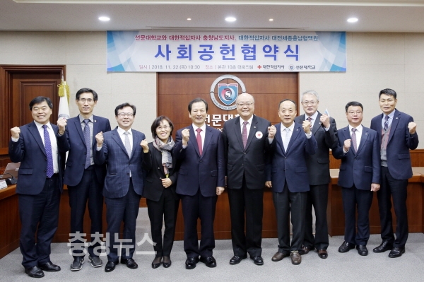 선문대학교(총장 황선조)가 22일 대한적십자사 충남지사(지사회장 유창기)와 사회봉사인증을 위한 사회공헌협약을 체결했다.